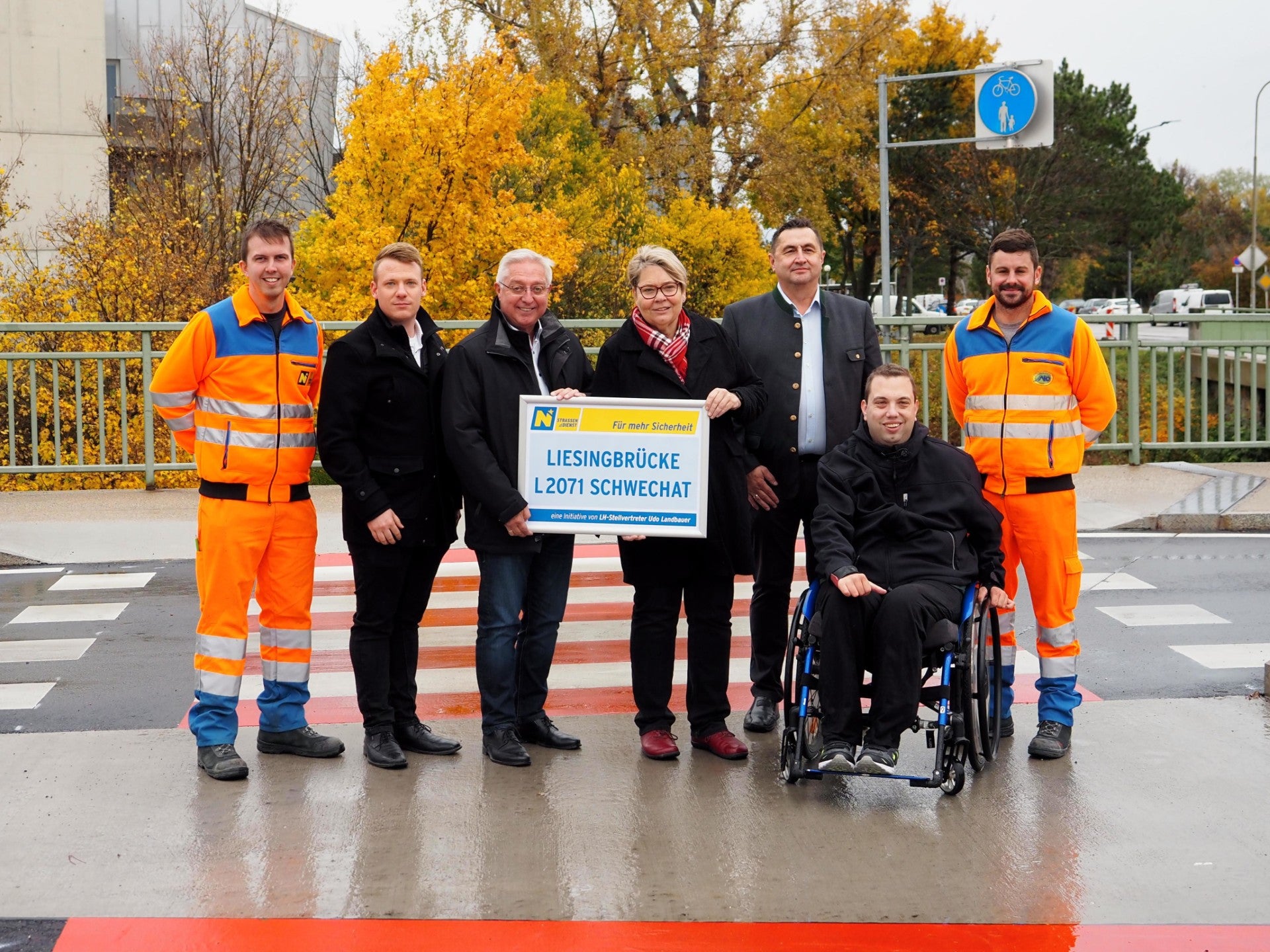 Werner Herbert hat in Vertretung von LH-Stellvertreter Udo Landbauer gemeinsam mit Bürgermeisterin Karin Baier und dem Leiter der NÖ Straßenbauabteilung Tulln DI Harald Kaufmann die Fertigstellung der Liesingbrücke im Zuge der Landesstraße L 2071 im Stadtgebiet von Schwechat vorgenommen.