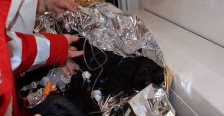 stabilisieren, versorgten es mit Sauerstoff und brachten den Hund
