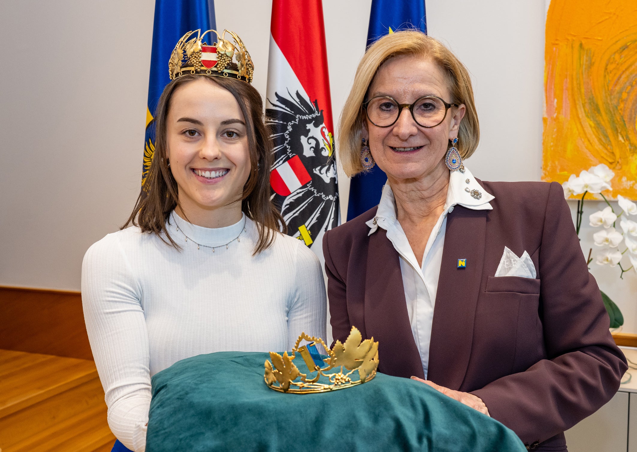 Landeshauptfrau Johanna Mikl-Leitner betonte bei der Präsentation: „Unsere Weinkönigin repräsentiert Niederösterreich mit Herz und Bodenhaftung. Sie ist Botschafterin für die vielen Winzerfamilien, die seit Generationen mit großem Einsatz und Leidenschaft unsere Heimat prägen. Mit der neuen Krone bringen wir genau diese Wurzeln zum Ausdruck – die enge Verbindung von Tradition, Handwerk und regionaler Identität, auf die wir in Niederösterreich mit gutem Grund sehr stolz sind.“
