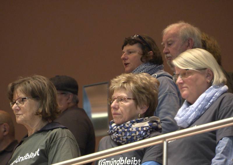 Im Tagesordnungspunkt 5 ging es in der gestrigen Landtagssitzung um Investitionen im Landesklinikum Horn sowie in den Spitälern in Waidhofen an der Thaya, Zwettl und Allentsteig (Bezirk Zwettl). Plötzlich machte sich auf der Zuschauertribüne – dicht besetzt mit Aktivisten aus Gmünd – Unruhe breit. Es kam zu Zwischenrufen, man wolle endlich gehört werden, hieß es. Es handelte sich hierbei um Aktivisten, die auf ihren T-Shirts groß "LG Gmünd bleibt" prangen hatte. Schließlich wurde die Sitzung von Landtagspräsident Karl Wilfing (ÖVP) unterbrochen, die Gruppe wurde von Mitarbeitern des Landtages aus dem Saal geleitet, ehe der Landtag weiter tagen konnte.