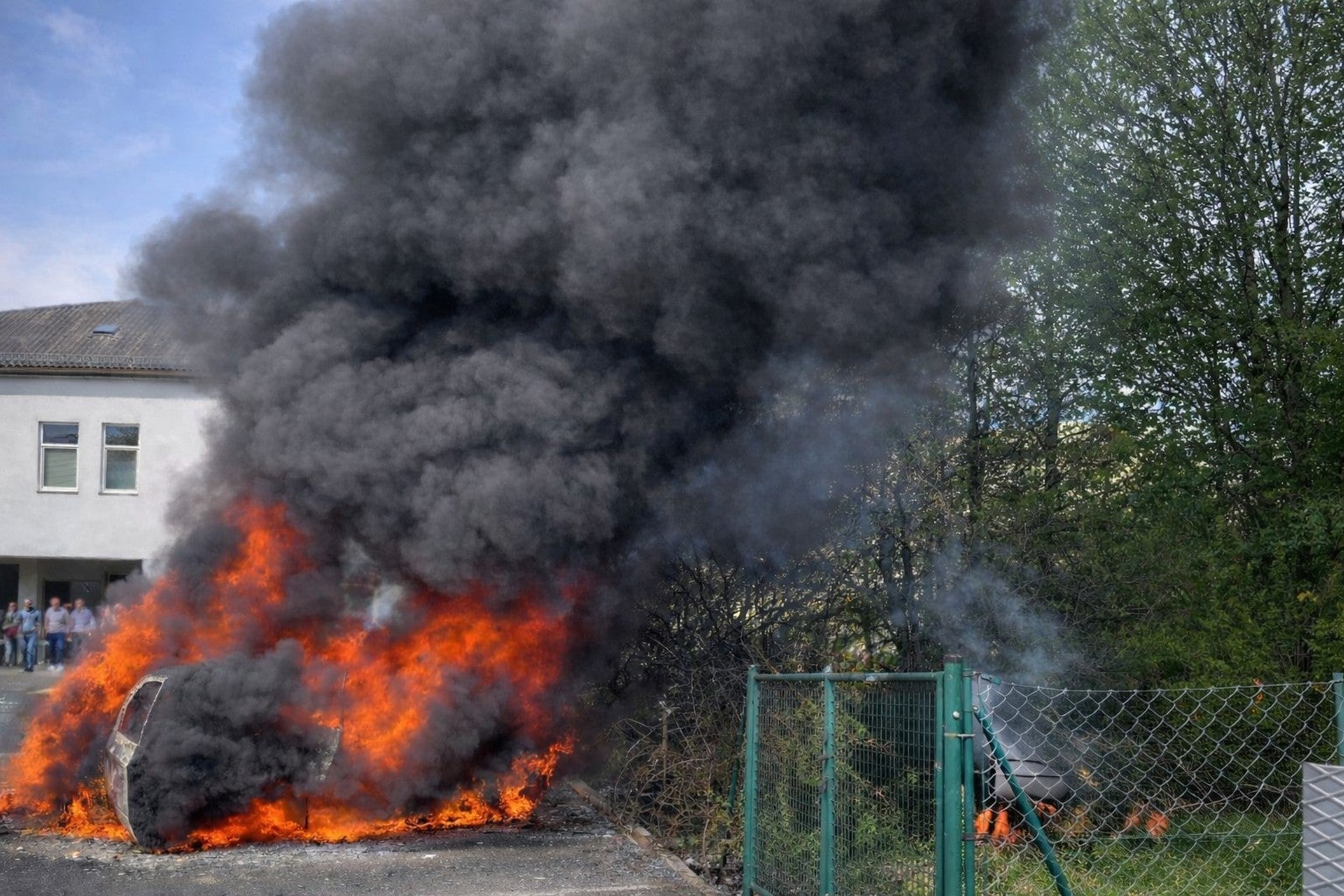 Dort brannte ein BMW und das Feuer entwickelte sich rasch in einen Vollbrand. Aufgrund der gefährlichen Lage im Siedlungsgebiet und der umliegenden Vegetation - Bäume und Büsche - wurde zur Sicherheit die Alarmstufe erhöht und Feuerwehren aus dem Umkreis nachalarmiert.