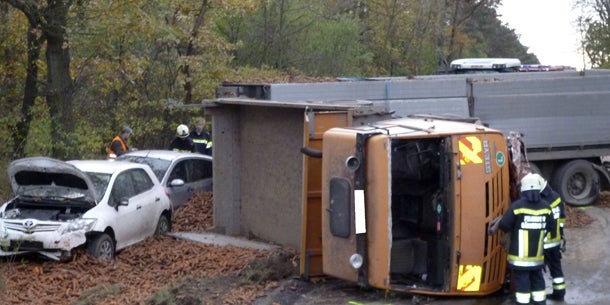 Zu einem schweren Verkehrsunfall mit zwei Lkw und drei Pkw ist es am Montagnachmittag auf der Landstraße 11 zwischen Gänserndorf und Markgrafneusiedl gekommen: Ein Sattelzug mit Karottenladung war umgestürzt. Dabei wurde der Lenker in der Führerkabine eingeklemmt. Ein zweiter Lkw kam quer auf der Fahrbahn zum Stehen, drei in die Karambolage verwickelte Pkw gerieten in den Straßengraben, teilte die Feuerwehr Gänserndorf in einer Aussendung mit.