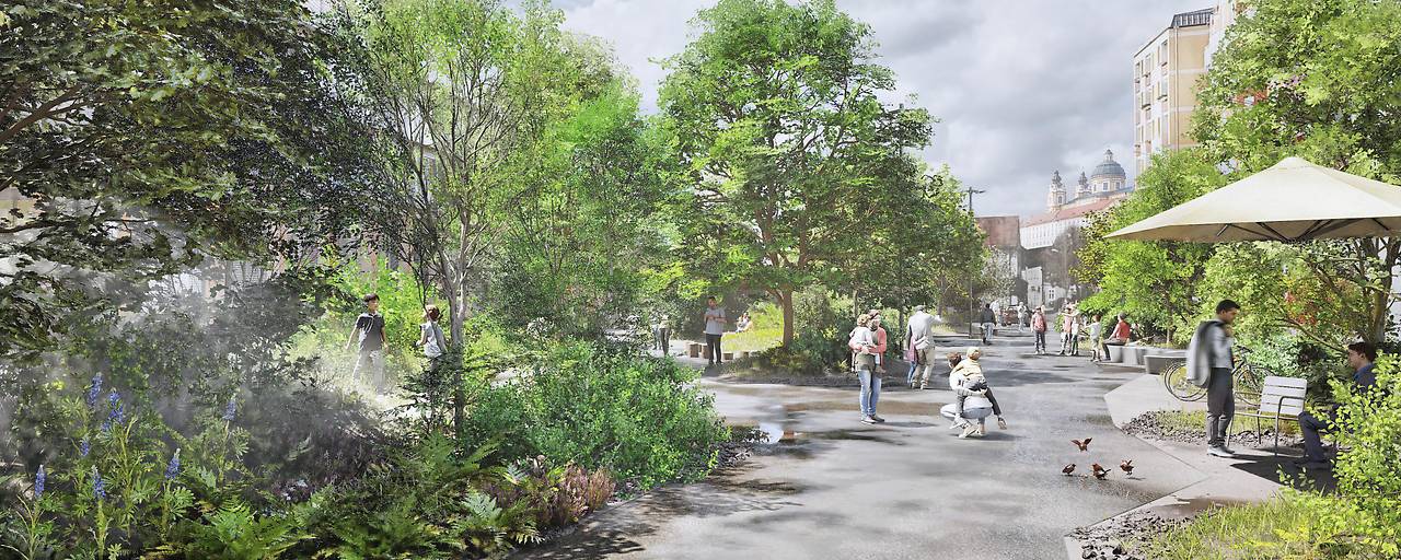 Auch ein "Klimawald“ im Bereich der Abbe-Stadler-Gasse ist Teil des Projekts. Dabei handelt es sich um eine Art Waldfläche mit heimischen Bäumen und schattigen Wegen, die neu geschaffen werden soll.