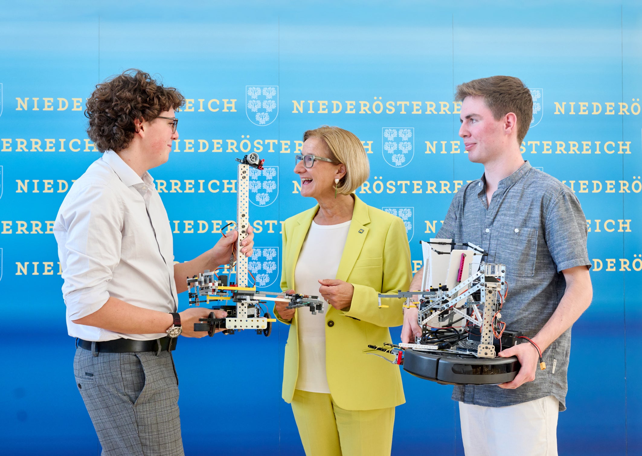Die weltweit besten Robotik-Nachwuchstalente kommen heuer erneut aus Wiener Neustadt. Landeshauptfrau Johanna Mikl-Leitner ist von den Schülerinnen und Schülern der HTL schwer angetan.
