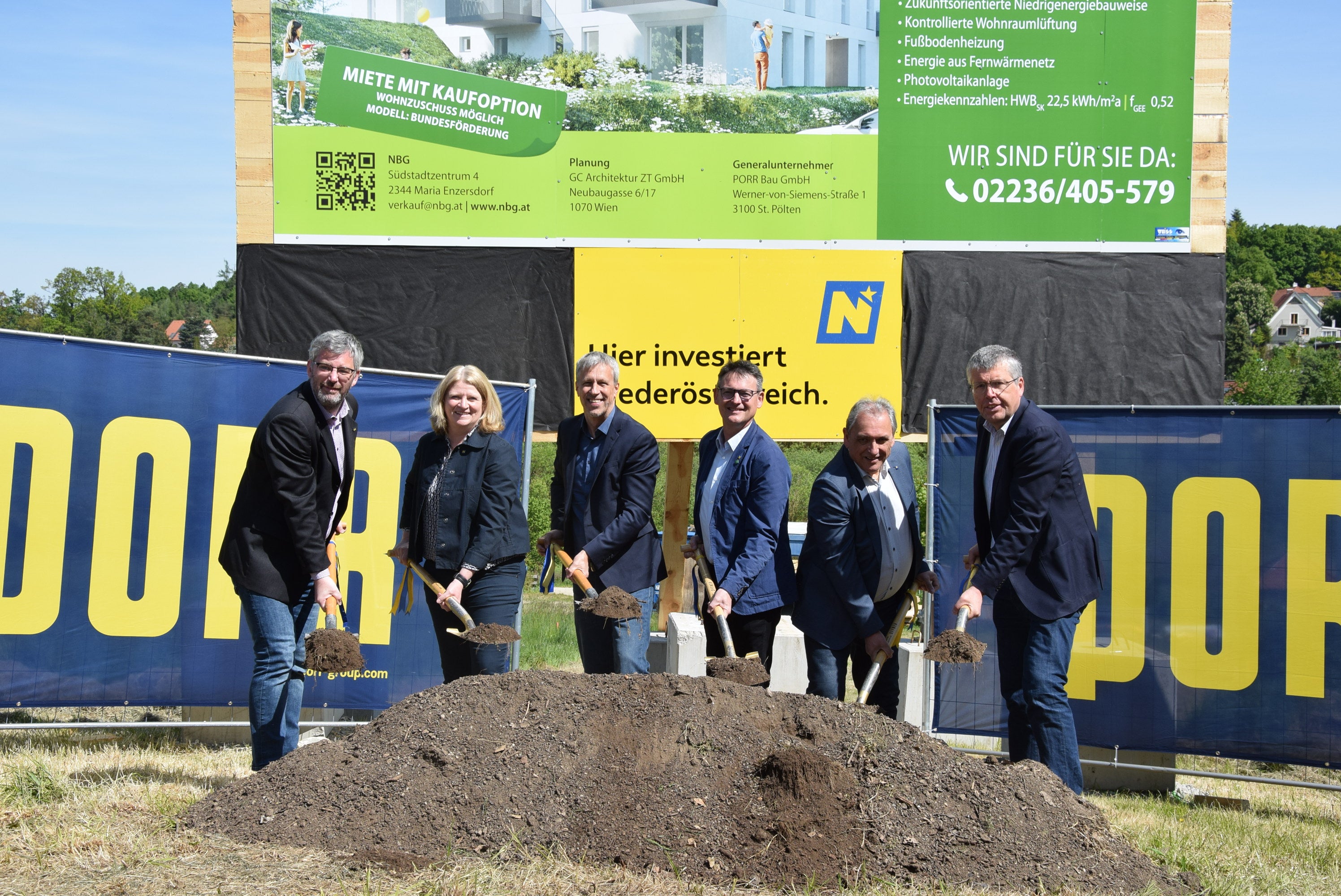Mit dem feierlichen Spatenstich an der Hauptstraße 13 wurde der Bau einer modernen Wohnhausanlage offiziell eingeläutet. In Vertretung von Landeshauptfrau Johanna Mikl-Leitner nahm Franz Linsbauer, Abgeordneter zum NÖ Landtag, an der Veranstaltung teil.