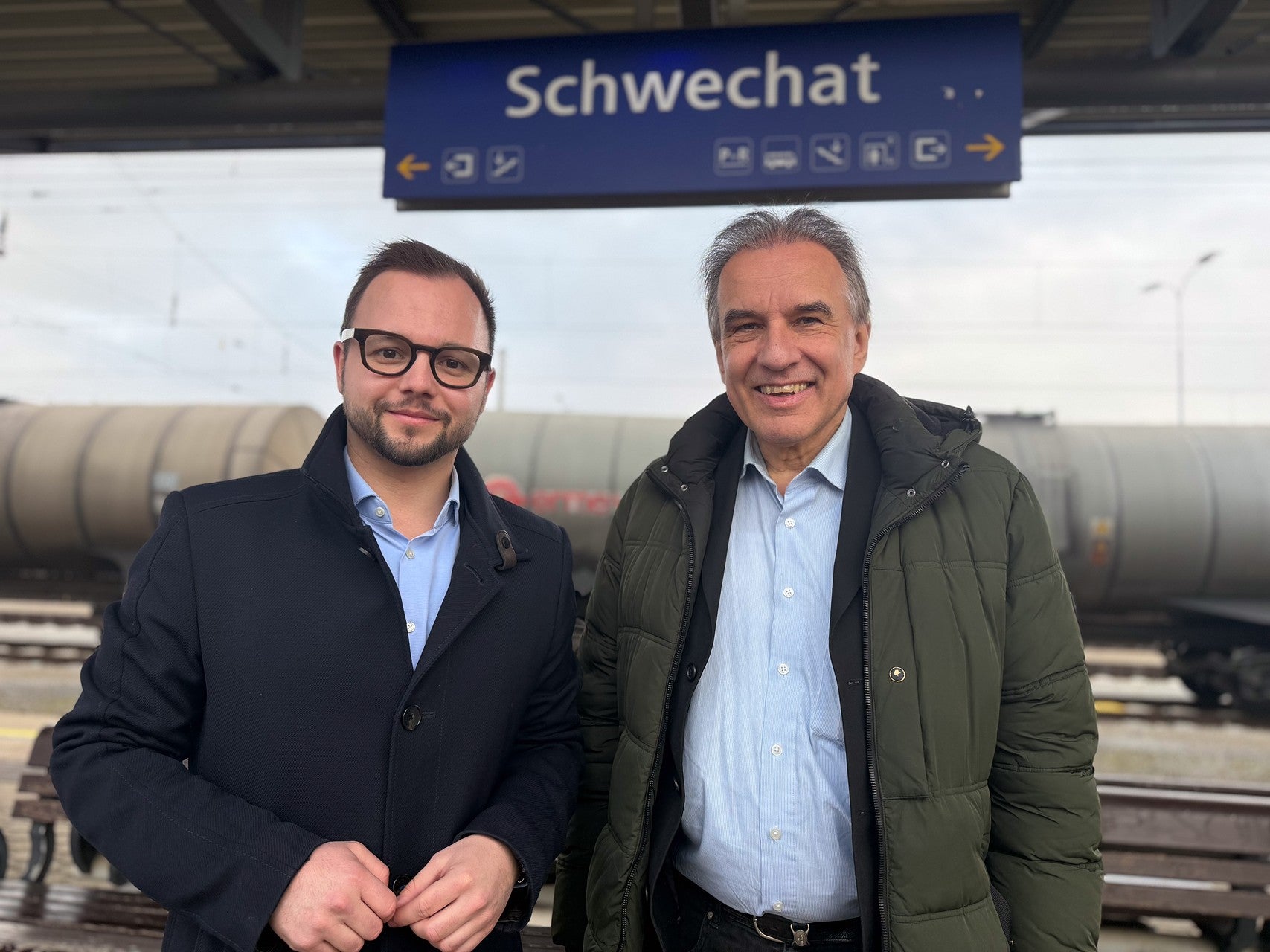 Im Rahmen einer Petition fordern NEOS deshalb, den Railjet künftig auch in Schwechat halten zu lassen. "Tag für Tag fahren zahlreiche Railjets und der City Airport Train mit freien Sitzplätzen an Schwechat vorbei – während die S7 als wichtigste Verbindung nach Wien aus allen Nähten platzt. Das ist für die Menschen in der Region weder nachvollziehbar noch zumutbar“, betont NEOS-Verkehrssprecher Christoph Müller. Gemeinsam mit Gemeinderat Paul Haschka hat sich der Landtagsabgeordnete ein Bild der Situation gemacht.