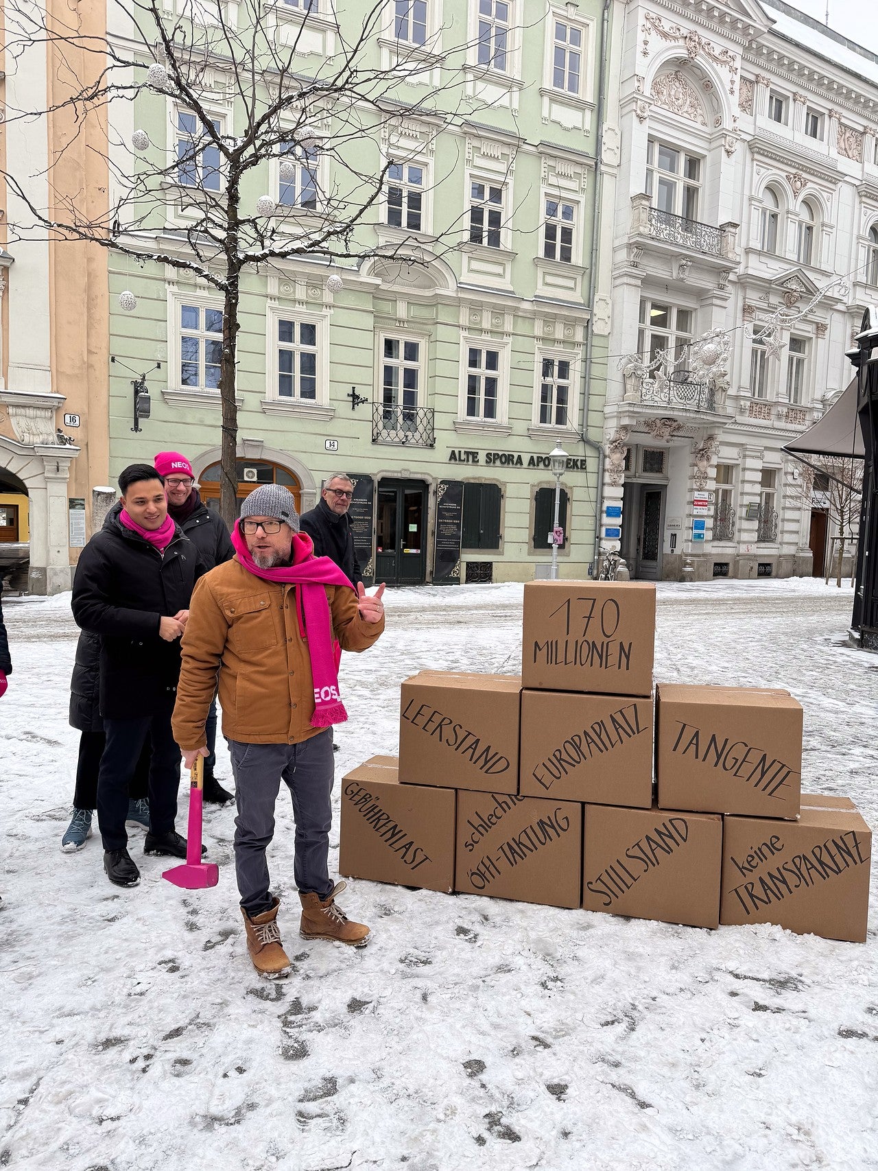 Beim Auftakt am Herrenplatz, bei dem Punschkrapferl und Taschenwärmer verteilt wurden, hat Spitzenkandidat Bernd Pinzer klargemacht, worum es geht: zu hohe Schulden, steigende Gebühren und eine Stadtregierung, die den Überblick verloren hat. Mit Pappkartonagen hat er – symbolisch – den Schuldenberg der roten Stadtregierung zerlegt. „Die SPÖ in der Stadt macht genau dasselbe wie ÖVP und FPÖ im Land: Schulden machen ohne Ende, zahlen dürfen es dann wir Bürgerinnen und Bürger. Schon jetzt ist klar, dass die rote Stadtregierung die Gebühren und Abgaben nach der Wahl erhöht. Aber die Leistungen werden weniger: keine Kindergartenplätze, weniger leistbarer Wohnraum, Stau statt Fortschritt. Das versteht niemand.“ Vor fünf Jahren zogen die Pinken mit 3,19 Prozent in den Gemeinderat ein, erobert wurde ein Mandat.