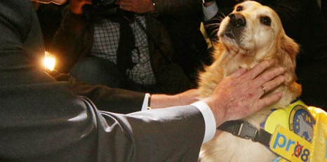 dann um 14.30 Uhr statt: „First NÖ-Dog“ Toby wird von seinem Herrchen,