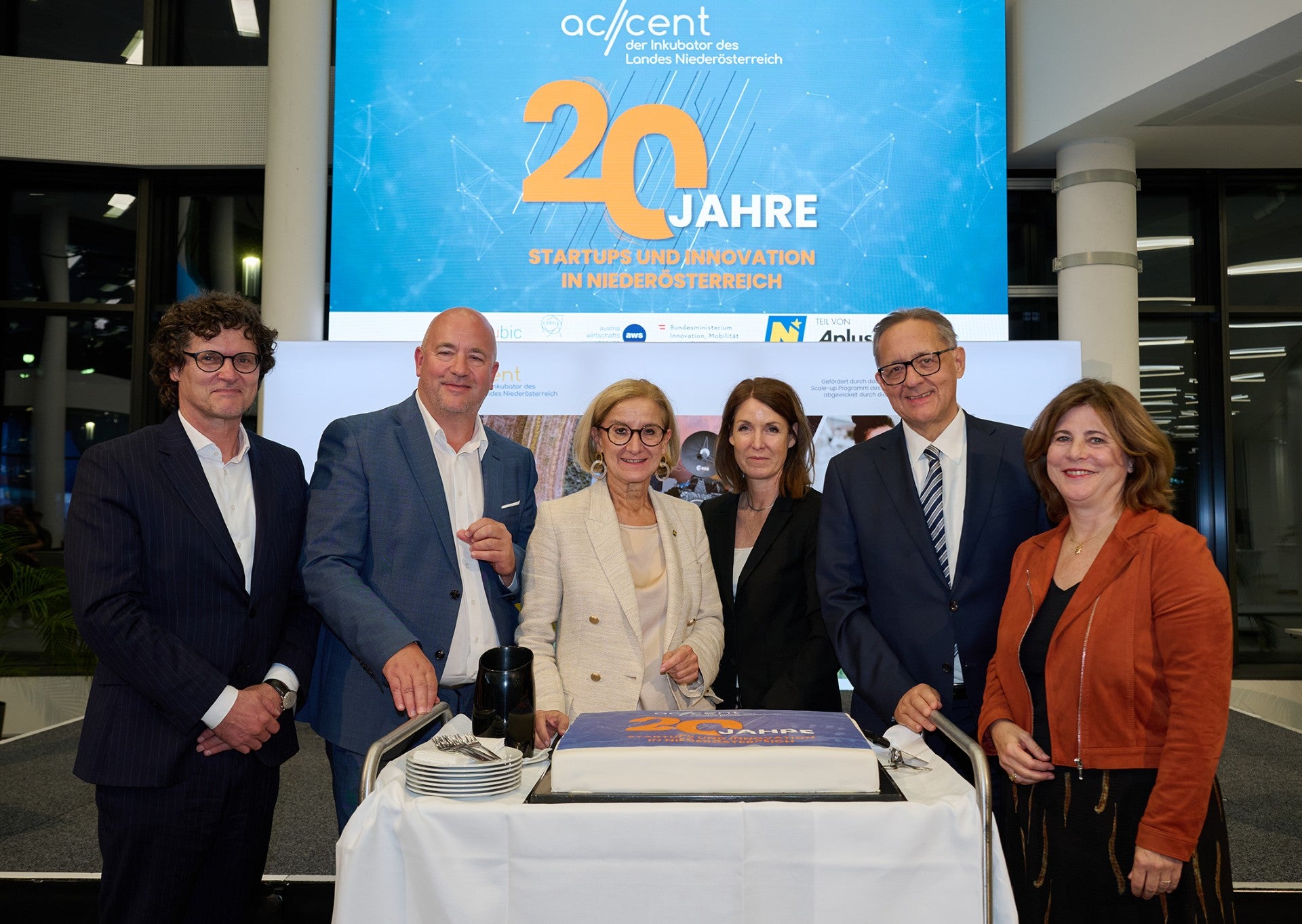 Zahlreiche Gäste aus Wirtschaft, Wissenschaft und Politik – allen voran Landeshauptfrau Johanna Mikl-Leitner (ÖVP) – gratulierten am gestrigen Dienstagabend im Office Park 4 am Flughafen Wien-Schwechat dem niederösterreichischen Inkubator accent zum 20-jährigen Jubiläum.