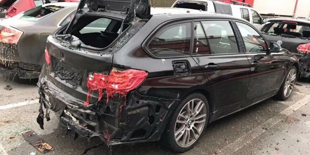 Bilder von Augenzeugen zeigen die gewaltige Wucht der Explosion. Ein Foto zeigt gar wie die Rückseite eines schwarzen BMW 3er Touring geschmolzen.