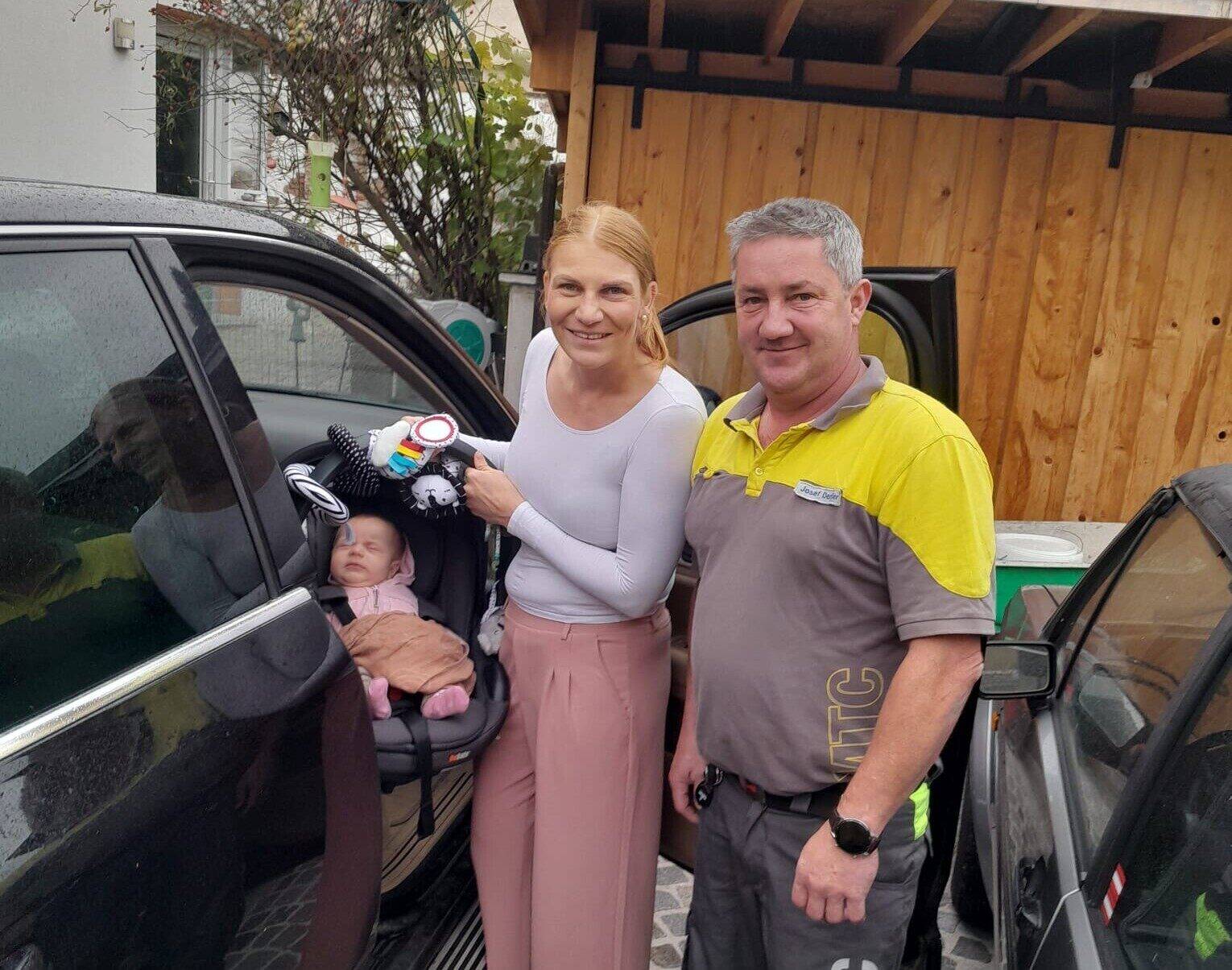 Gott sei Dank trug die Mutter ihr Handy am Körper. Gleich wählte sie die ÖAMTC-Nothilfe unter der Nummer 120. Schnell schilderte sie ihre Situation, Josef Derfler verstand - der Pannenfahrer eilte auf schnellstem Wege zu Mutter und Baby. Er erinnert sich: "Sie ist ruhig geblieben." Auch lobt er sie: "Sie hat alles richtig gemacht." Umgehend brauste Derfler vom Stützpunkt in Melk los, bald war er bei der traurigen Mutter und dem weinenden Baby.