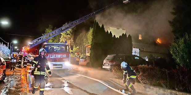 In einem Wohnhaus in der Merkensteiner Straße in Gainfarn war Feuer ausgebrochen. Ein Großaufgebot von sechs Feuerwehren mit rund 100 Einsatzkräften rückte an. Bei Ankunft der Florianis schlugen die Flammen bereits aus dem Dachfenster. Unter schwerem Atemschutz kämpften sich die Feuerwehrleute durch das verrauchte Haus.