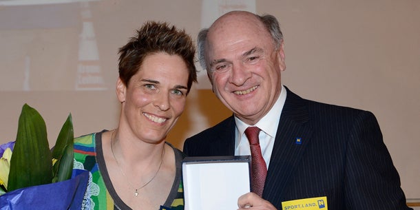 Trotz viel Arbeit: Pröll gratuliert Dorfmeister.