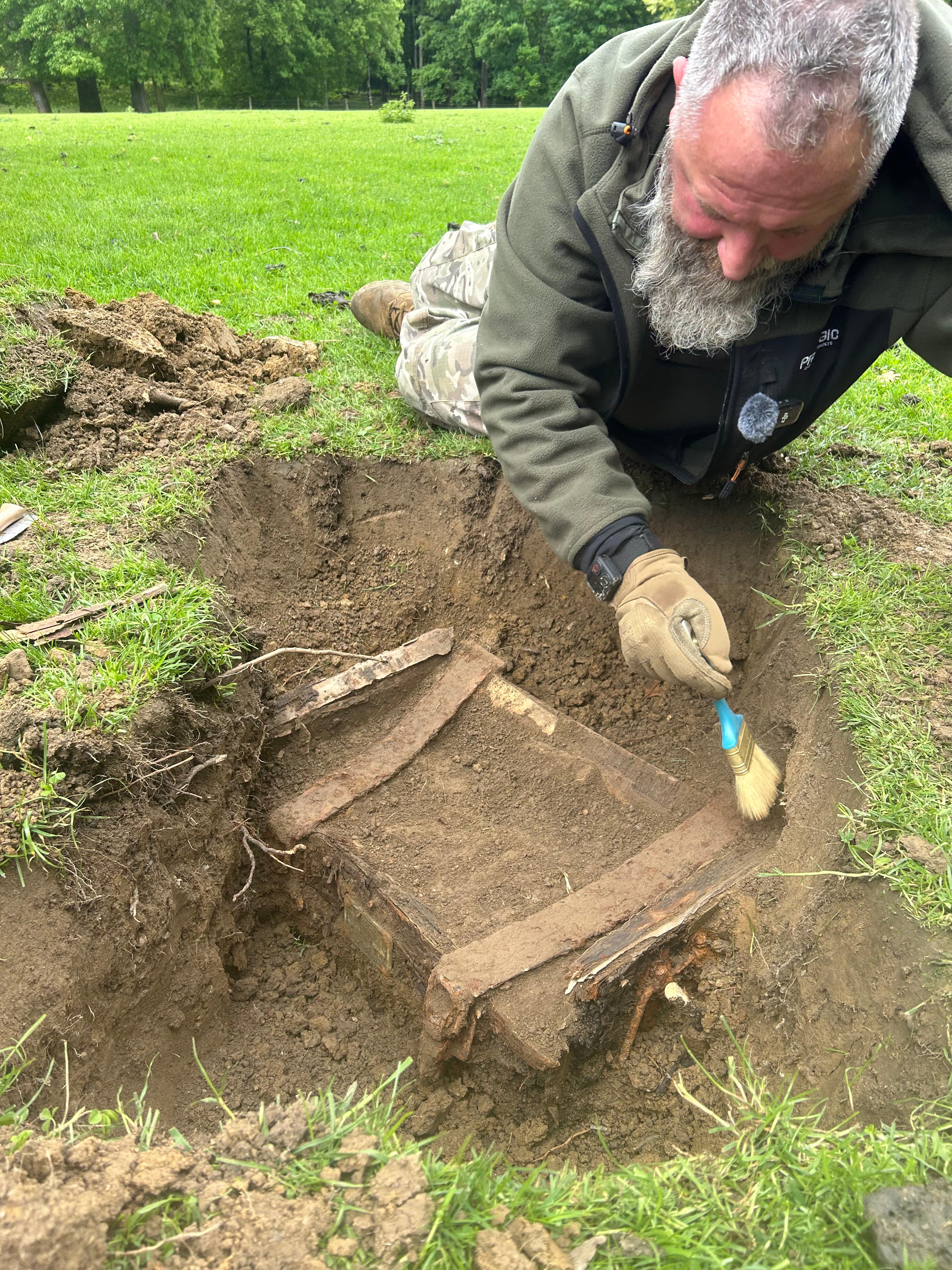 Bürgermeister Lukas Michlmayr selbst gab am 17. Mai 2025 den spektakulären Fund bekannt, der exakt 80 Jahre nach Ende des Zweiten Weltkriegs erfolgt ist. Die Kiste – ursprünglich wohl als Feldküchenkiste verwendet – wurde im Hirschgehege des Parks von Militärhistoriker István Szebenyi und seinem Team mit einem Metalldetektor aufgespürt. Enthalten sind Tagebücher, Befehle, Karten und Lageberichte, die die dramatischen letzten Wochen der Husaren-Division dokumentieren.