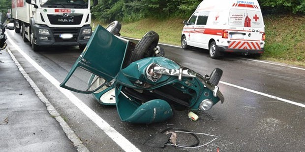 In der Kurve nach dem "Mausbachl" im Gemeindegebiet von Türnitz kam er von der Straße ab. Der Oldtimer überschlug sich und blieb auf der Gegenfahrbahn auf dem Dach liegen.