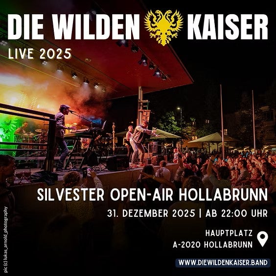 Ab 22 Uhr spielen "Die Wilden Kaiser“ am Hauptplatz auf. Davor und danach (21 bis 22 Uhr sowie 0.30 bis 2 Uhr) sorgt DJ Günther Schmidt für die musikalische Untermalung. Das neue Jahr wird nach dem klassischen Countdown mit der Pummerin begrüßt. Von 22.30 bis 0.30 Uhr steht außerdem Alexander Paul mit seiner kostenlosen Fotostation bereit, um schöne Erinnerungen festzuhalten, die an Ort und Stellen ausgedruckt werden.