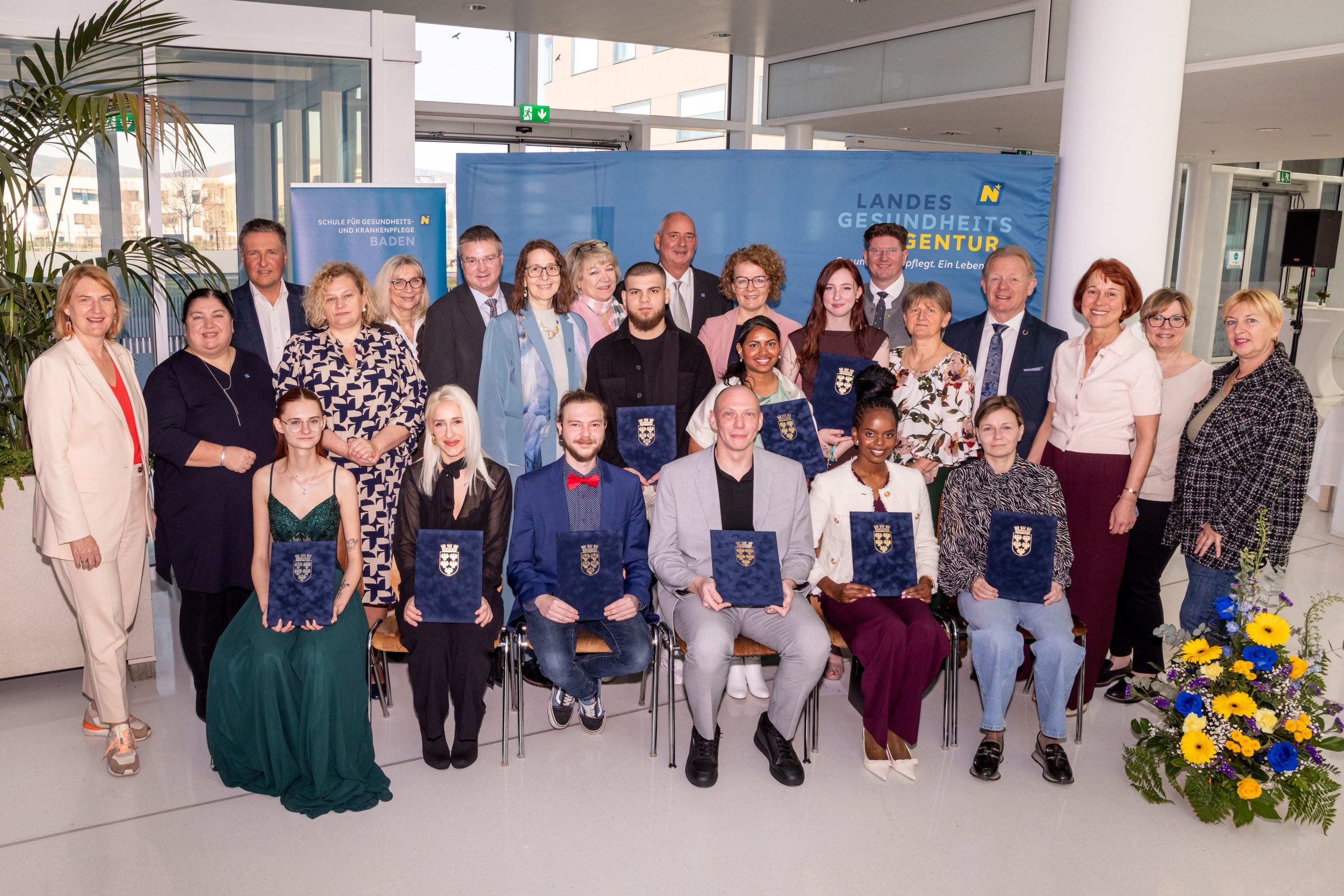 Bei der festlichen Abschlussfeier der Schule für Gesundheits- und Krankenpflege Baden nahmen die Absolventen der Ausbildung zur Pflegeassistenz ihre wohlverdienten Abschlusszeugnisse entgegen. In Vertretung der Landeshauptfrau gratulierte Landesrätin Christiane Teschl Hofmeister.
