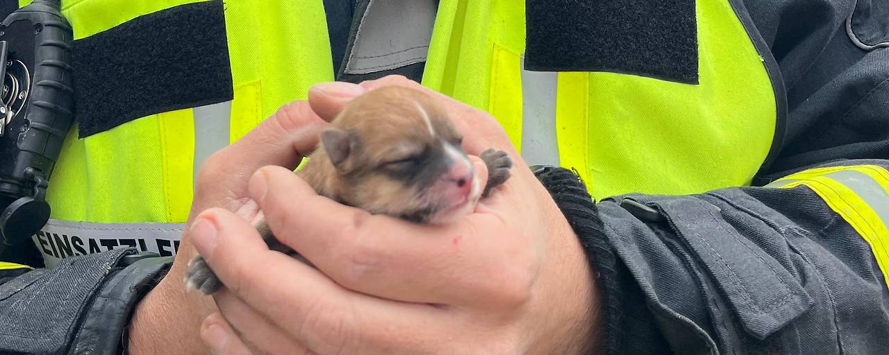 Zu einer herzerweichenden Tierrettung rückte Montagvormittag die Feuerwehr in Groß-Enzersdorf (Bezirk Gänserndorf) aus. Ein zwei Tage alter Welpe war in ein Heizungsrohr gefallen. Die Einsatzkräfte konnten ihn nach etwa 1,5 Stunden befreien. Das Tier blieb Gott sei Dank unverletzt.