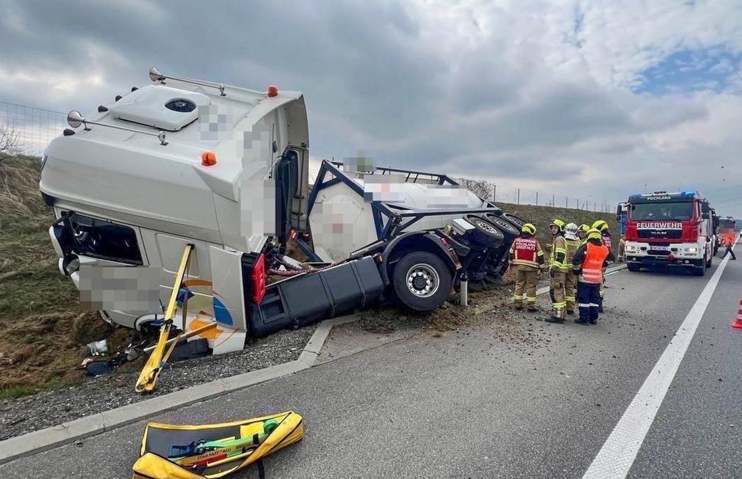 Auf der Westautobahn (A1) zwischen Pöchlarn und Melk ist am Montag in den Mittagsstunden nach ÖAMTC-Angaben ein Tankwagen umgestürzt.