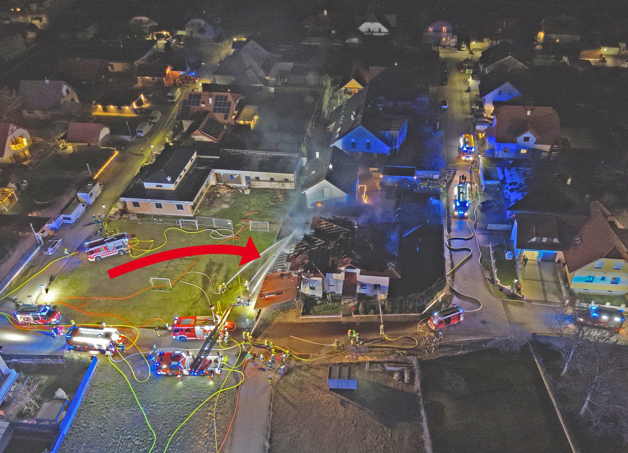 213 Feuerwehrleute aus mehreren Bezirken waren im Löscheinsatz gestanden. Verletzt wurde zum Glück niemand. Das Einfamilienhaus, ein Carport, ein Auto sowie ein Nebengebäude sind laut Polizei fast zur Gänze ausgebrannt. Ein Übergreifen der Flammen auf andere Wohngebäude konnte durch den Großeinsatz der Löschmannschaften verhindert werden,.