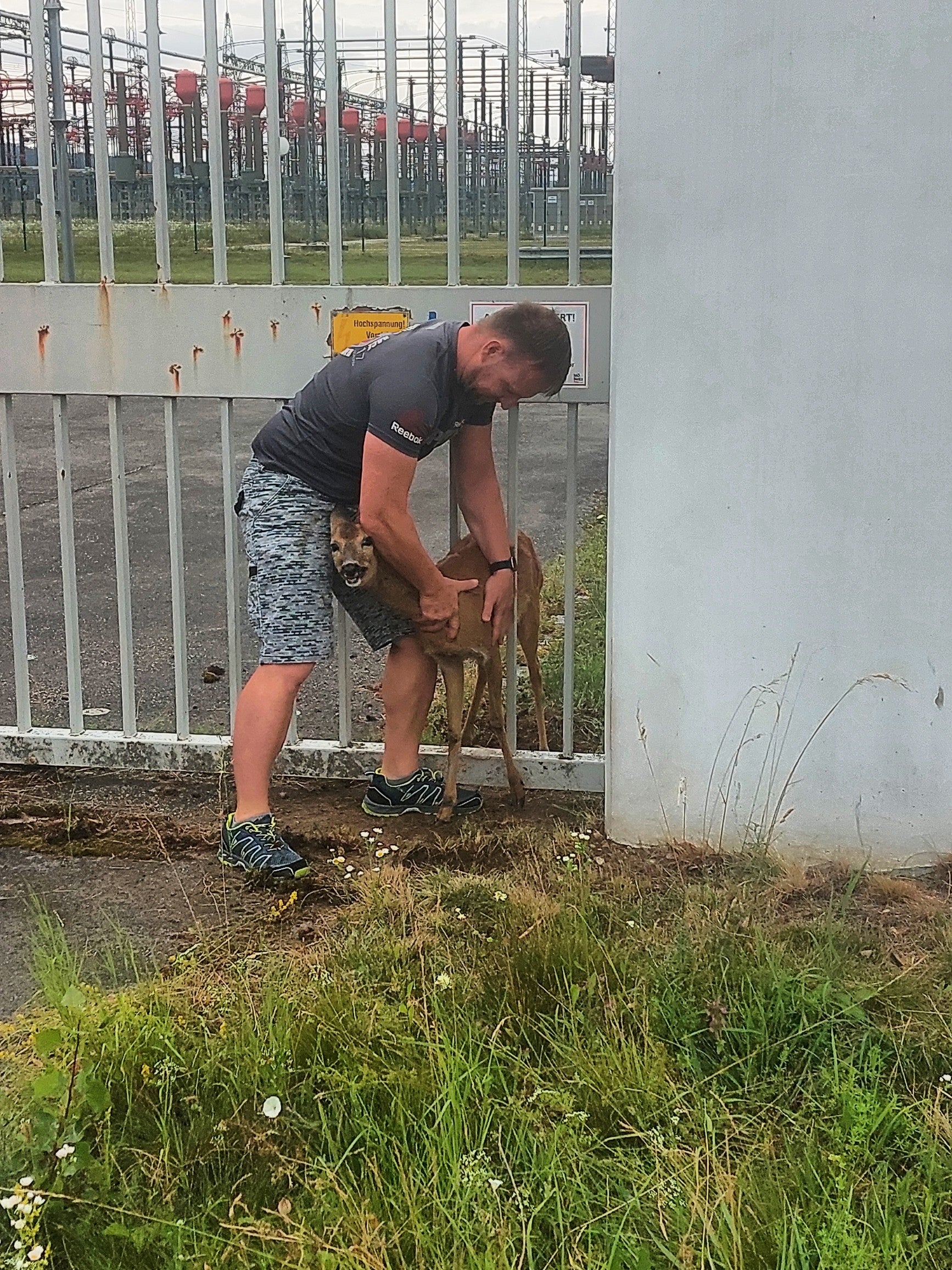 Ein Reh ist im Umspannwerk Dürnrohr in Zwentendorf (Bezirk Tulln) in einem Tor festgesteckt.