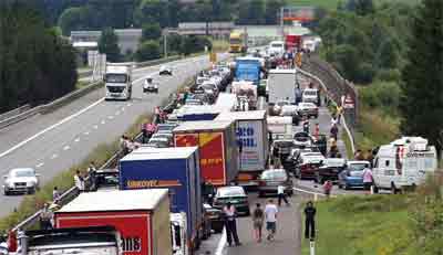 Im Baustellenbereich war ein defekter Pkw liegengeblieben. Dieser verursachte einen Mega-Stau. Die Wartezeit betrug gegen 9.00 Uhr immer noch rund eine Stunde.