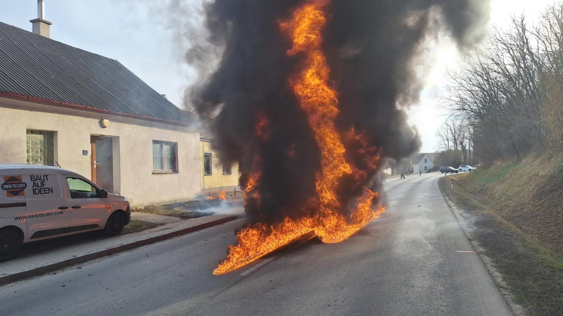 Pürstendorf. Ein Traktor ist am Samstag in Pürstendorf (Gemeinde Ladendorf, Bezirk Mistelbach) in Flammen aufgegangen. Das Anhänger-Gespann blieb plötzlich auf der Mistelbacher Straße (B40) mitten im Ortsgebiet stehen. Beim Absteigen sah der Fahrer bereits Flammen aus dem Motorraum schießen und verständigte die Feuerwehr. Als sie eintraf, stand das Fahrzeug bereits in Vollbrand, berichtete diese.