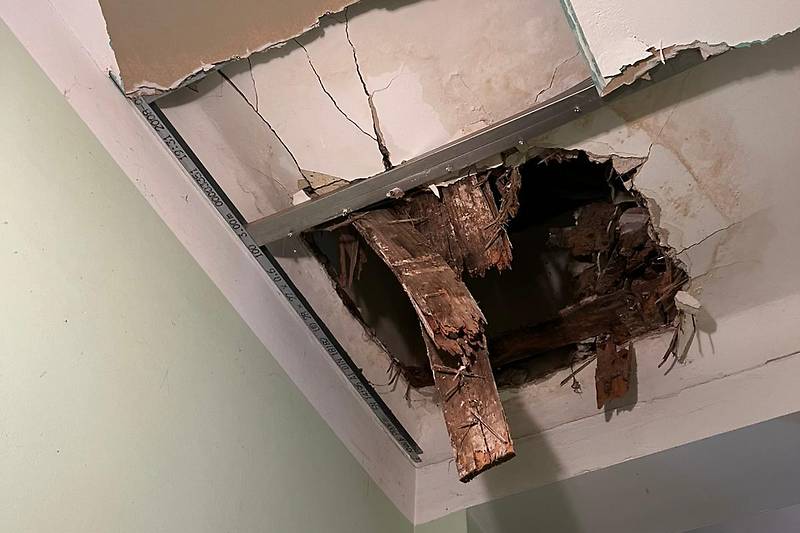 Die Einsatzkräfte brachten die beiden Familien, die in dem Haus wohnen, mit dem Mannschaftstransportwagen der Feuerwehr in ein Notquartier. "Die Decke ist genau im Eingangsbereich durchgebrochen, es war Gefahr im Verzug“, berichtet der Feuerwehrmann.