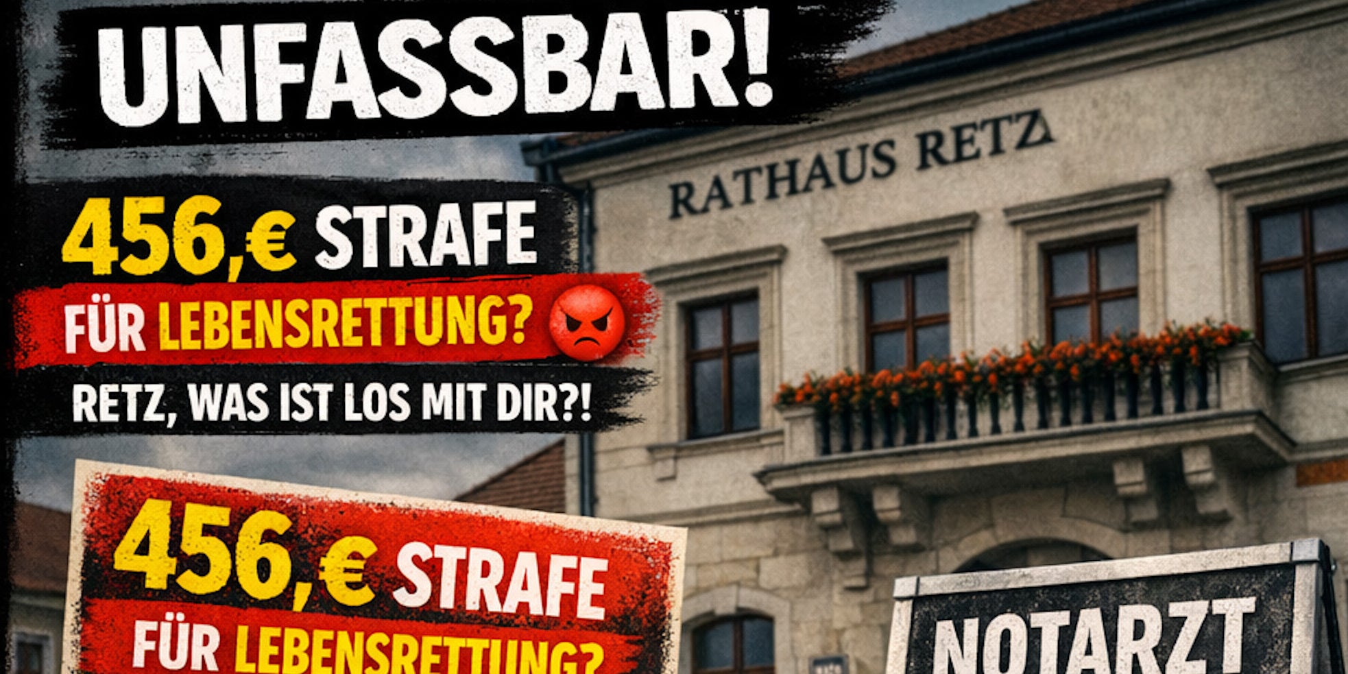Das ist kein Witz – aber es fühlt sich so an! Eine Bürgerinitiative kämpft ehrenamtlich für den Erhalt des Notarzt-Stützpunktes Retz – und was macht die Stadtgemeinde? Sie schickt eine Zahlungsaufforderung über 456 Euro!