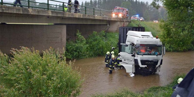 Weil sich der Gesundheitszustand des 39-jährigen Fahrers verschlechterte, konnte er von den Feuerwehren nicht gleich geborgen werden. Ein Feuerwehrmann musste zunächst die Notärztin durch den Fluss zum Lkw tragen, damit diese die Erstversorgung vornehmen konnte. Danach sei der Mann aus dem Fahrzeug gerettet und ins Spital gebracht worden.