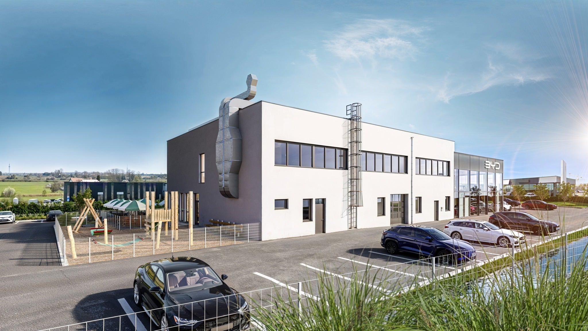 Der Campus kann sich sehen lassen: Barrierefrei, Photovoltaik am Dach, überdachte E-Auto-Schnellladeplätze – Zeilinger denkt an die Zukunft! Und das Geld bleibt in der Region: Zwei Drittel der Investitionskosten flossen direkt in regionale Betriebe. Eingemietet hat sich bereits "Marty Mobility" für den Verkauf von BYD-Elektroautos – weitere Büros stehen noch zur Verfügung!