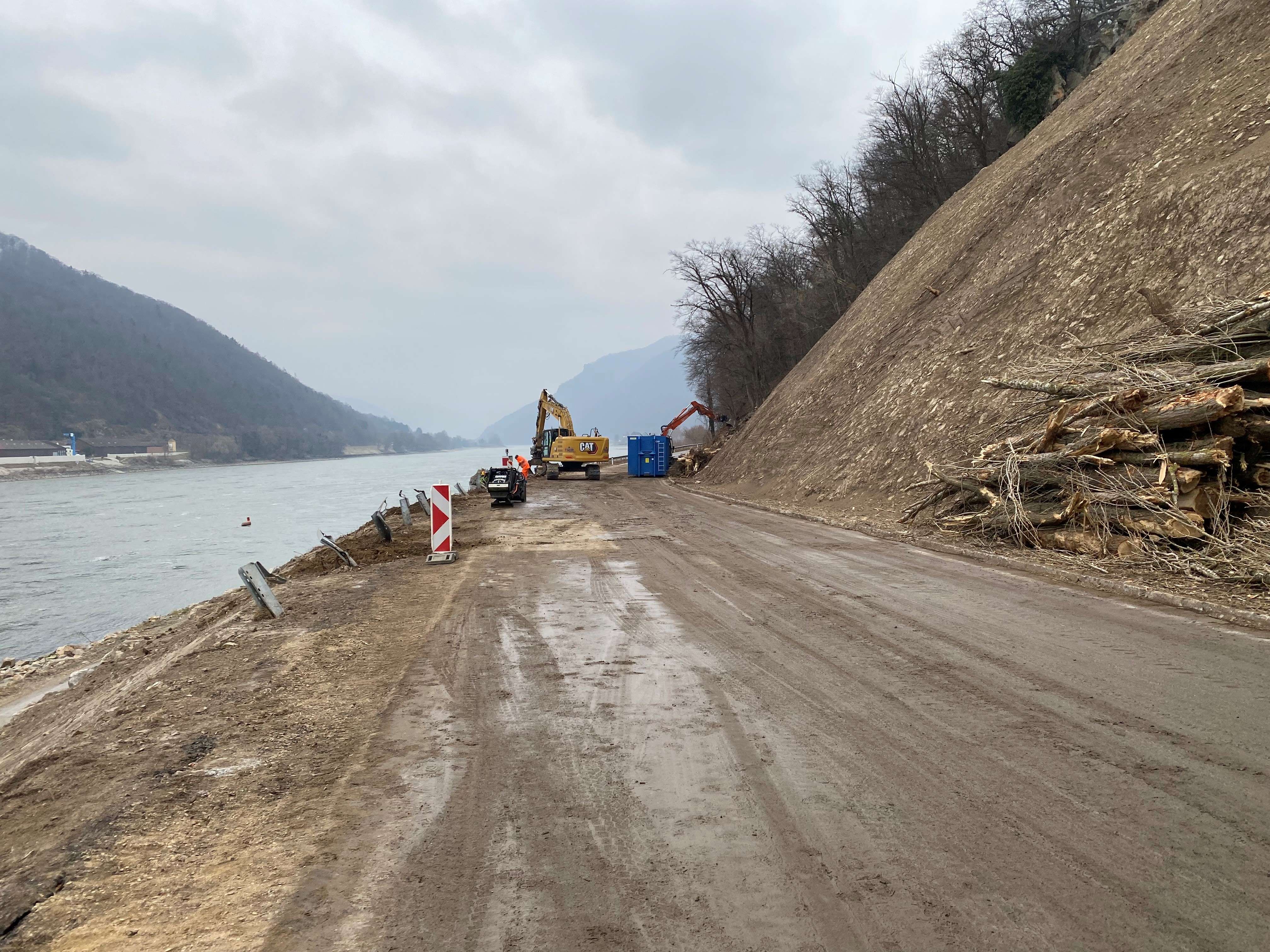Seit Mittwochabend sind die B33 und der angrenzende Radweg im Abschnitt am Südufer der Wachau geräumt. Die Arbeiten zum Abtransport der Sturzmassen seien beendet, berichtete Niederösterreichs Straßenbaudirektor Josef Decker. "Durch massiven Einsatz konnte der Abtransport der Sturzmassen deutlich schneller als vorgesehen abgeschlossen werden. Trotz der scheinbar freien Straße ist für die Gewährleistung der Verkehrssicherheit aber noch die Montage von Seilsperren notwendig", betonte Decker.