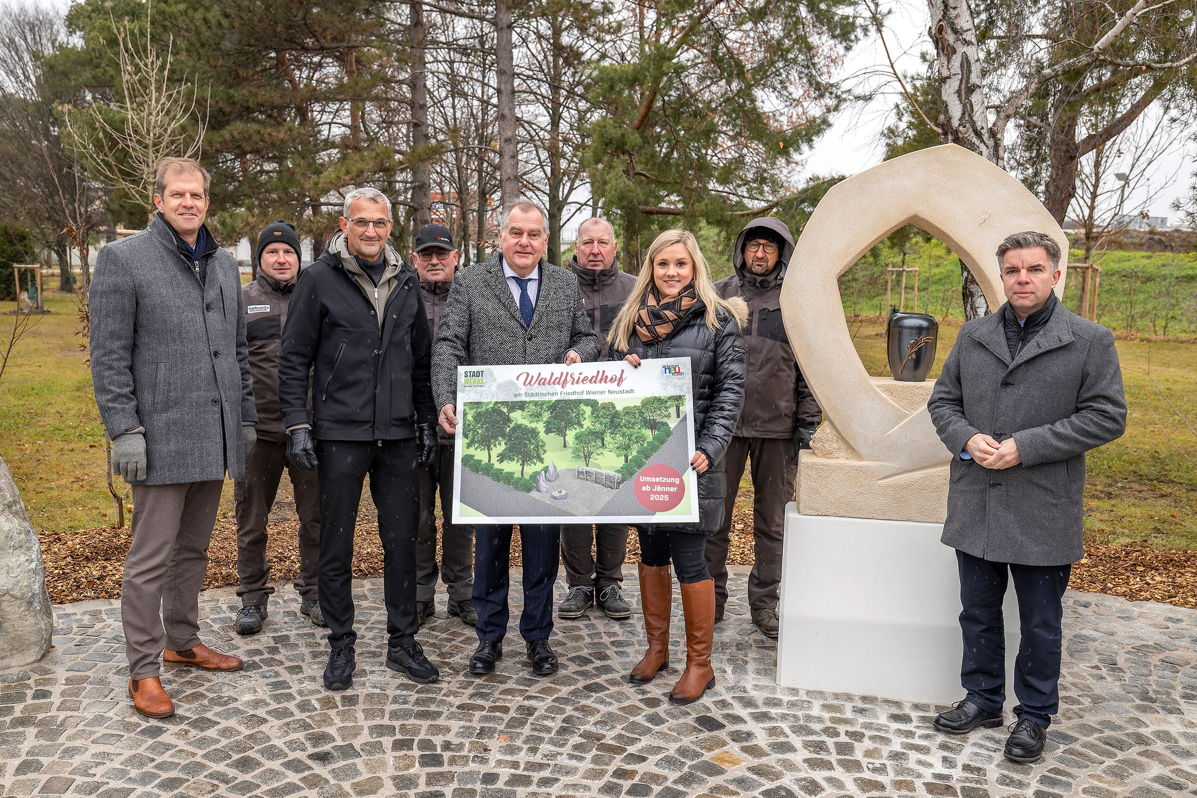 Die Baumbestattung ist eine der beliebtesten Formen der Naturbestattung. Hierbei wird die Urne mit der Asche des Verstorbenen in die Erde neben einen Baum eingebettet. Ab sofort gibt es auch am städtischen Friedhof in Wiener Neustadt die Möglichkeit einer Baumbestattung. Bereits im August 2022 begrünte die Friedhofsverwaltung eine Fläche von rund 2.200 Quadratmetern, im Juni 2024 starteten die finalen Arbeiten, die mit Dezember nun abgeschlossen wurden.
