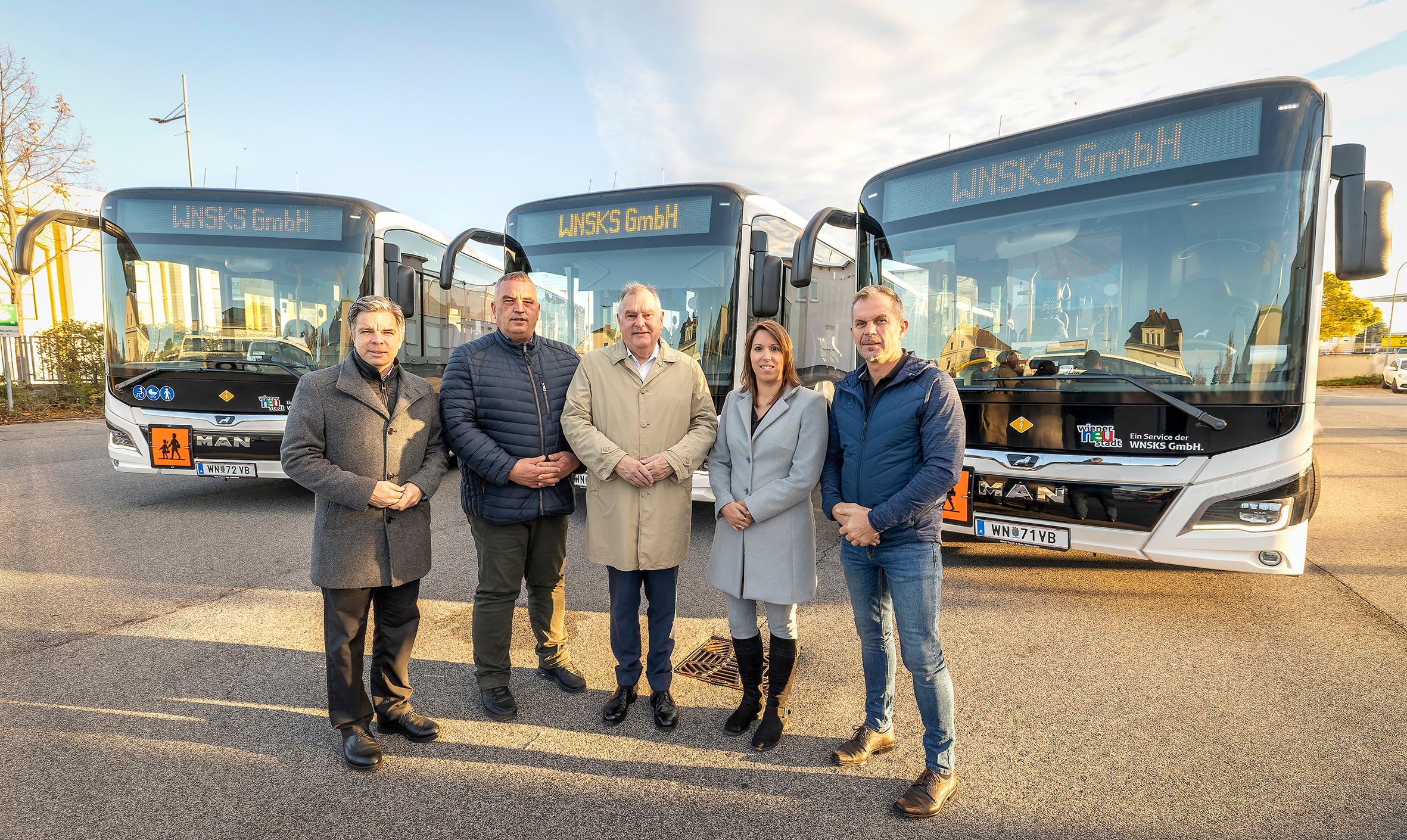 Im Wiener Neustädter Stadtgebiet kommen drei neue Busse zum Einsatz: Die MAN Efficient Hybrid Niederflurbusse - zwei mit 12 Metern (drei Türen) und einer mit 18 Metern Fahrzeuglänge (vier Türen) - bieten einen stufenlosen Einstieg bei allen Türen und Barrierefreiheit für die Fahrgäste.
