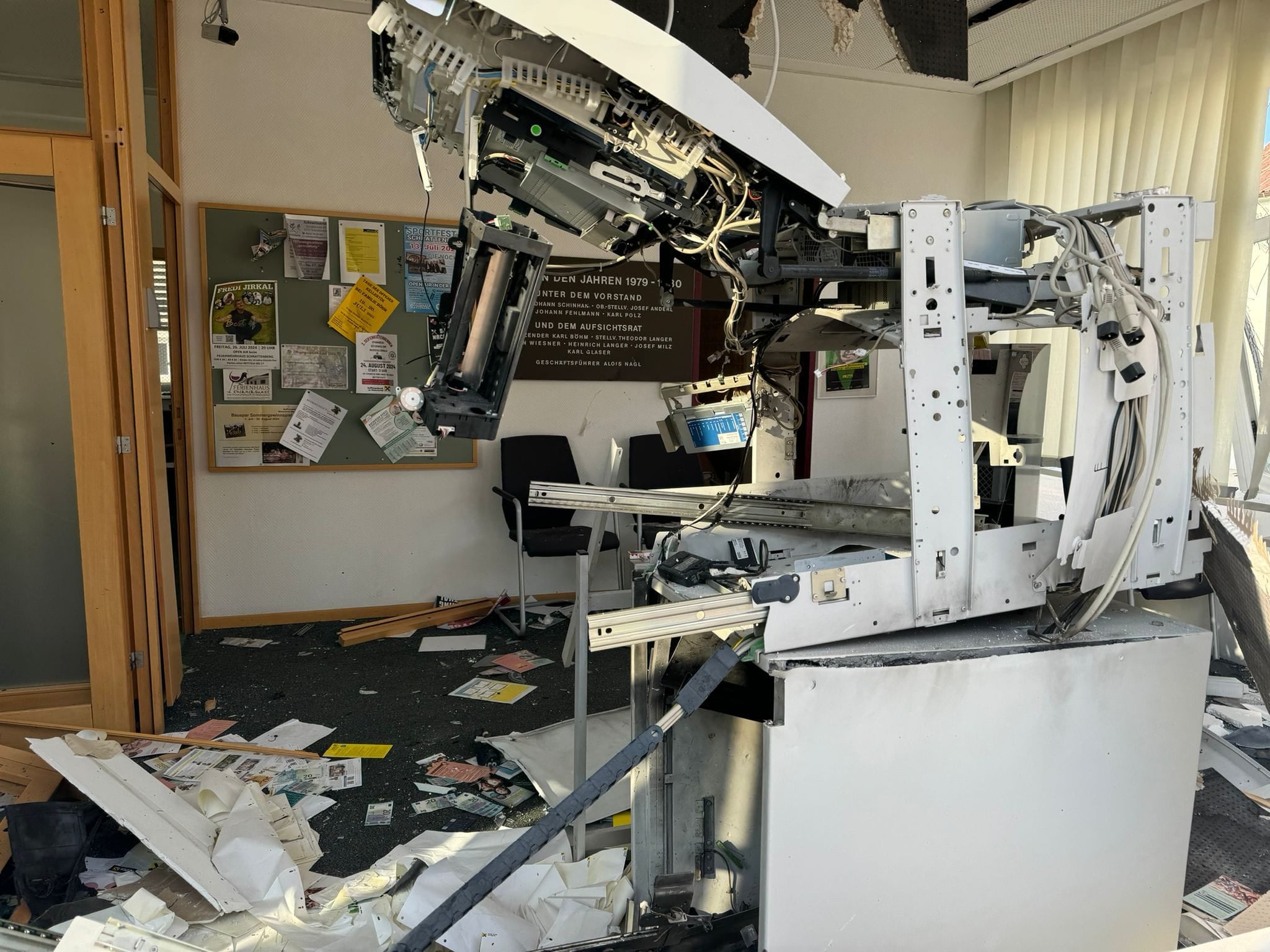 Der Schaden in der Filiale in Schrattenberg könnte sich laut ersten Schätzungen auf bis zu 150.000 Euro belaufen, wobei der Sachschaden weit höher sein dürfte als die erbeuteten Geldscheine. Ganz wenig Bares konnte das Quartett nur erbeuten, die meisten Banknoten hat es durch die Explosion regelrecht zerfetzt. Offenbar haben die nächtlichen Diebe zu viel Sprengstoff oder Sprenggas verwendet.