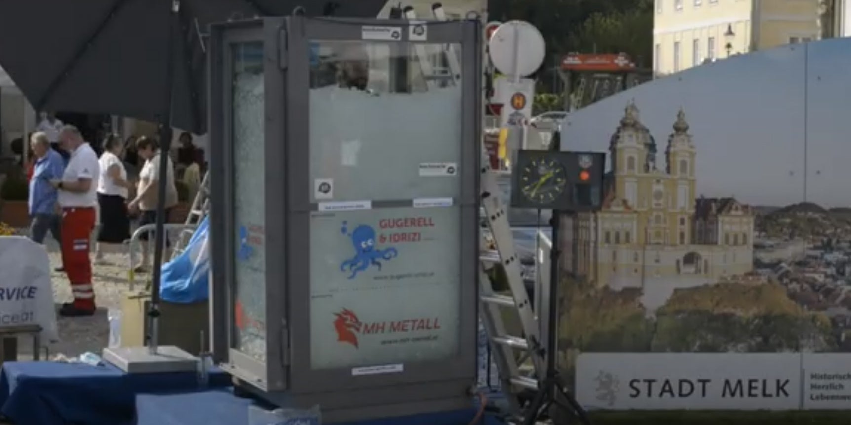 Der 42-jährige Extremsportler war in der Glaskabine bis zu seinen Schultern mit Eis bedeckt und trug dabei nur eine Badehose. Er zeigte sich nach seinem geglückten Weltrekordversuch erleichtert. "Ich bin überglücklich, vor allem die Sonne - die Wärme tut gut", sagte er nach dem Verlassen der Eiskabine auf dem Melker Hauptplatz, wo auch einige Zuschauer den Weltrekordversuch mitverfolgten.