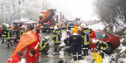 Gegen 8.25 Uhr war die aus Ottenschlag stammende Marion-Astrid V. (38) mit ihrem grauen Opel Meriva von Vitis kommend nach Zwettl unterwegs gewesen. An der Zwettler Ortseinfahrt verlor die Küchenhilfe dann die Kontrolle über ihr Fahrzeug, geriet auf die Gegenfahrbahn. Gerald L. (37) aus Zeining bei Melk blieb keine Zeit auszuweichen. Ungebremst bohrte sich der Opel in seinen roten VW Bora, der von der Straße katapultiert wurde. L. lag eingeklemmt im Wrack, musste herausgeschnitten werden. Seine Beifahrerin Marion W. (28) erlitt wie Marion-Astrid V. schwerste Verletzungen.