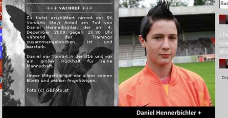 „Daniel war ein großer Rückhalt für seine Mannschaft. Unser Mitgefühl gilt vor allem seinen Eltern und seinen Angehörigen.“ So nimmt der SK Vorwärts Steyr auf seiner Homepage Abschied von Daniel Hennerbichler: Dem erst 14-jährigen Torwart der U-16-Mannschaft des Vereins – der am Freitag völlig überraschend gestorben war.