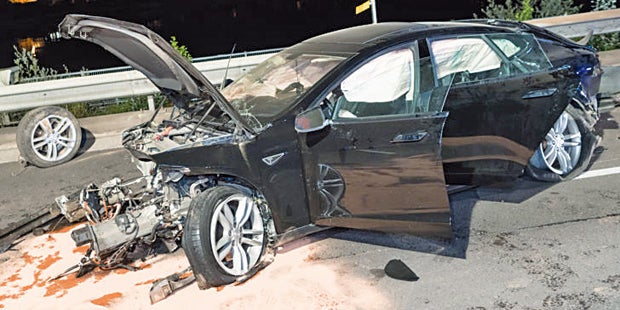 Tesla überschlug sich mehrmals: Totalschaden