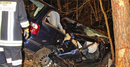 Mehrere Schutzengel dürften am Dienstagabend eine deutsche Sozialarbeiterin aus Scharnstein und ein von ihr betreutes Mädchen gehabt haben. Sie kamen bei einem spektakulären Crash mit dem Leben davon. Das Auto der 40-Jährigen kam auf der Kremsmünsterer Straße zwischen Voitsdorf und Pettenbach (Bezirk Kirchdorf) von der Fahrbahn ab - warum, ist laut Polizei bisher ungeklärt. Der Wagen der Deutschen überschlug sich und prallte anschließend gegen mehrere Bäume.