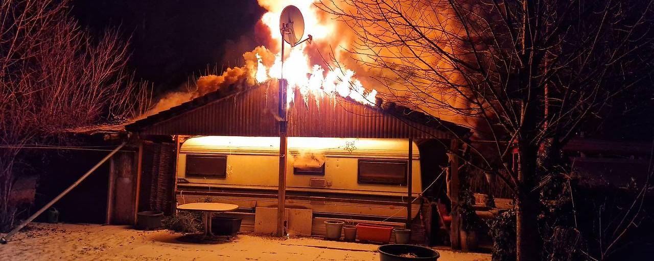 Als die Feuerwehr kurz nach Mitternacht bei der Gartenhütte eintraf, stand diese in Vollbrand. Die Ursache des Feuers war vorerst unklar, heute haben Ermittlungen dazu begonnen. 60 Feuerwehrleute waren im Einsatz.