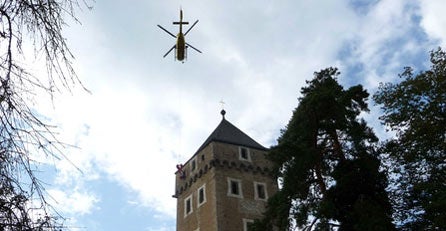 Der ÖAMTC-Notarzthubschrauber "Christophorus 10" hat Donnerstagnachmittag einen Schlaganfall-Patienten aus der obersten Turmluke der Burg Neuhaus bei Sankt Martin im Mühlkreis in Oberösterreich geholt. Eine andere Art der Bergung war wegen der engen Stiegen im Turm nicht möglich. Das berichtete die Informationszentrale des ÖAMTC.