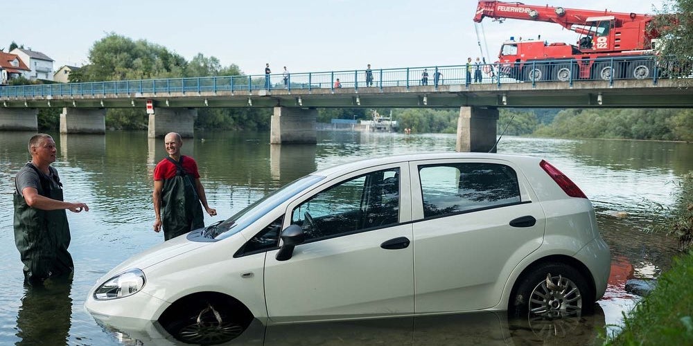 Laut Schilderung der 55-Jährigen Auto-Besitzerin hatte sie ihr Gefährt etwa eine dreiviertel Stunde zuvor abgestellt und sich selber zum Badeplatz begeben. Der Pkw musste aus dem rund 40 Zentimeter tiefen Wasser aufwendig geborgen werden.