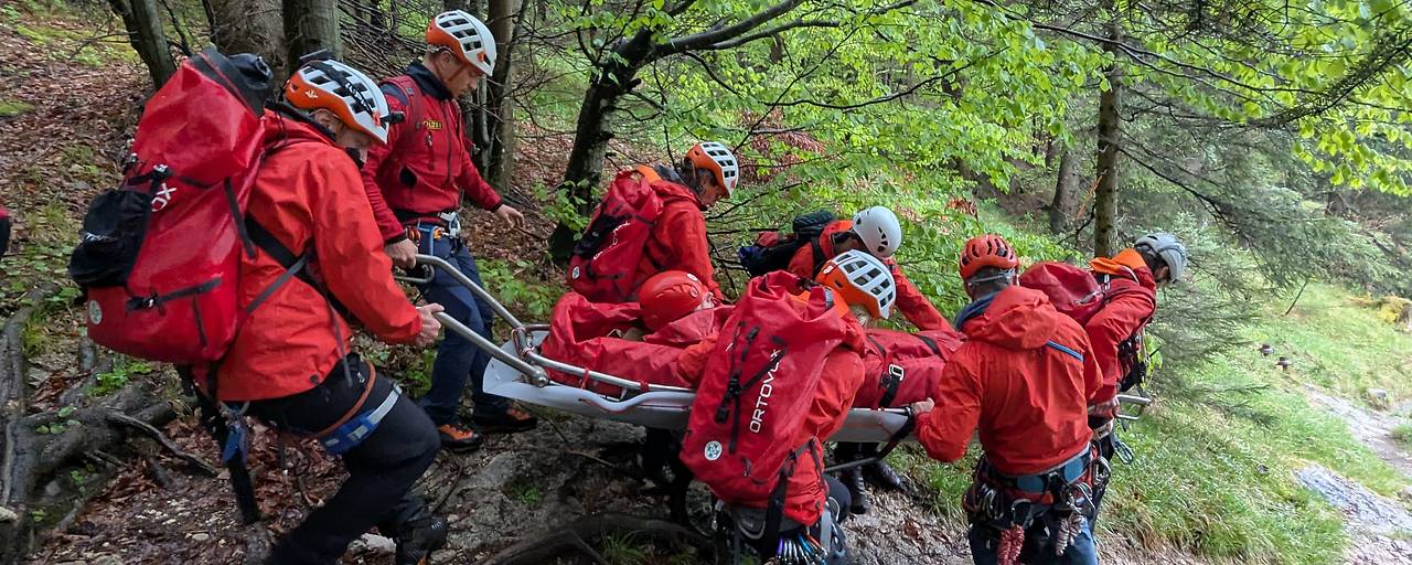 Wetterbedingt war in der Nähe allerdings keine Hubschrauberlandung möglich. Bergretter und Alpinpolizisten transportierten den Schwerverletzten daher zuerst rund 250 Höhenmeter talwärts aus der Nebelzone. Dann wurde er vom Rettungshubschrauber ins Salzkammergut Klinikum Gmunden geflogen.