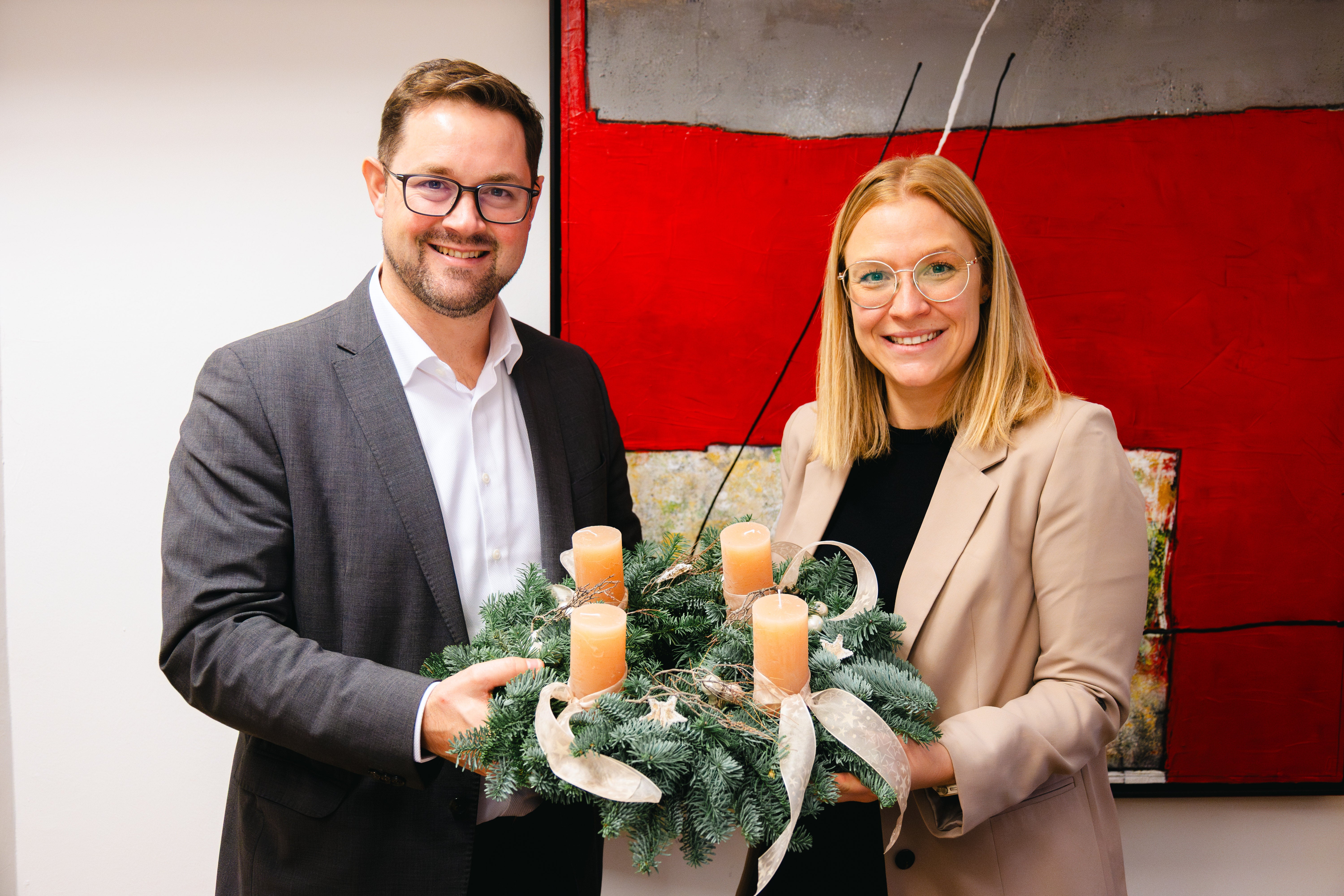 OÖ. Es ist eine liebgewonnene Tradition: Rechtzeitig bevor am Sonntag die erste Kerze entzündet wird, überraschte OÖVP-Landesgeschäftsführer Florian Hiegelsberger seine Amtskollegen der anderen Parteien im Rahmen eines vorweihnachtlichen Austauschs mit einem Adventkranz – so auch SPÖ-Landesgeschäftsführerin Nicole Trudenberger.