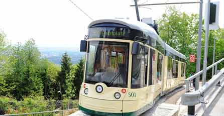 Garnituren der Pöstlingbergbahn vom Hauptplatz hinauf auf den Berg