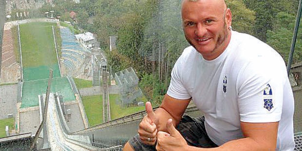 Verrücktes ist man von Günther Schachermayr (36) und seiner Vespa gewöhnt. Mal fuhr der Steyrer auf einem Stahlseil 44 Meter senkrecht unter einem Kran hoch, mal knatterte er nur auf dem Hinterrad der Zweitakter-Maschine die Großglockner-Hochalpenstraße hinauf. Doch was der Motorroller-Artist jetzt vorhat, übertrifft alles. Schachermayr will die Skisprungschanze am Bergisel mit der Vespa runterfahren – und auch wieder hinauf.