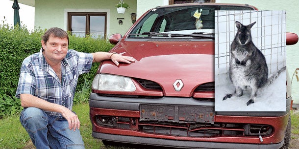 Der Besitzer des exotischen Tiers, Christopher S. aus Handenberg, trauert nun um den zweijährigen „Jimmy“: Das Känguru starb beim Crash.