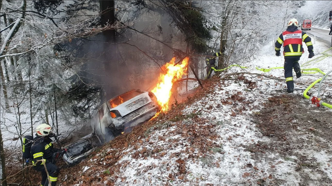 Im Mühlviertel kam es am Freitag zu einem Unfall. Das Auto ging daraufhin in Flammen auf. Die 18-jährige Lenkerin konnte sich nur knapp aus dem Wrack retten.