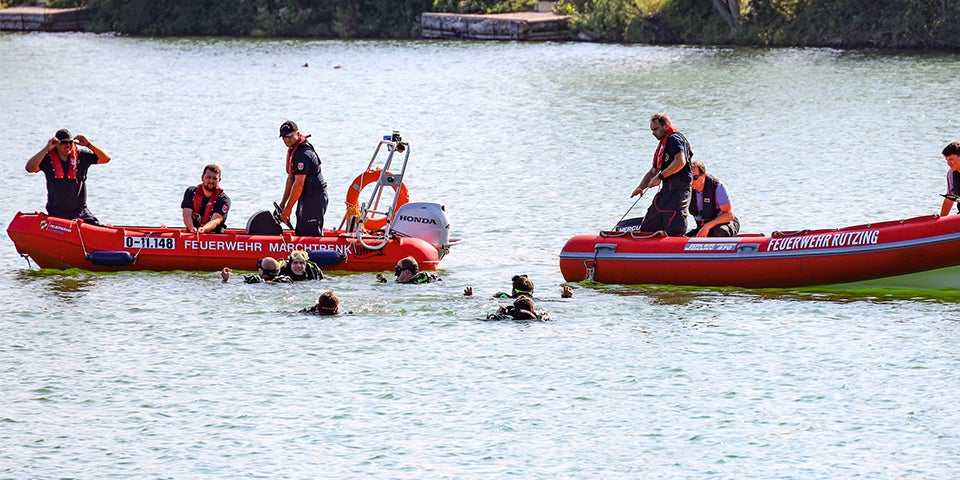 Die Feuerwehrtaucher suchen nach der Person - bisher ohne Erfolg.
